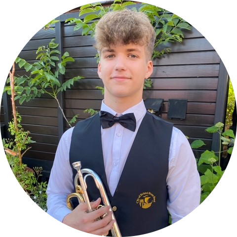 Aidan is a cornet player from Bath and started playing at the age of 6 in the Midsomer Norton and Radstock Training band. He quickly moved up the ranks into the Senior Band and continued that progression onto Solo Cornet by the age of 12 and enjoyed an 8-year stint with the band. He auditioned for the National Children’s Band of Great Britain and gained a seat in 2019, Aidan had two courses as a member then one as a mentor. Aidan went onto attend his first National Youth Brass Band course in 2021 and still enjoys the experiences to the fullest. He currently plays solo cornet for the City of Bristol Brass Band and has performed in many concerts with them, he has also enjoyed success at contests like Wychavon entertainment contest, Welsh open and the Regional contest with Filton Concert Brass on solo cornet. Aidan has recently started to play on a Mercer & Barker MB3B-C mouthpiece and says it is the best mouthpiece he has played due to the comfortability and the clarity in note production and believes they are the best mouthpieces available.