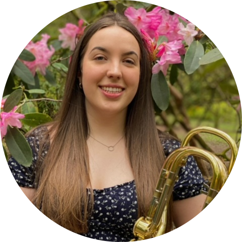 Her musical journey began on tenor trombone in the South Lanarkshire instrumental music service. She soon started lessons with Charlie Farren through the Whitburn Band organisation transitioning to bass trombone in 2019.