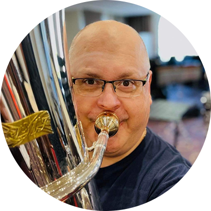 After Fodens, Dean joined the famous Grimethorpe Colliery Band where he toured Europe, Australia, New Zealand, Hong Kong, and the USA. He was conducted by Professor Gary Cutt, and played in concerts to capacity audiences in iconic venues such as the Sydney Opera House and the Carnegie Hall. After a string of Brass in Concert successes, and two more Nationals wins (narrowly missing a hattrick), Dean moved to Brisbane Australia to be with his tuba playing partner Julie Woods. Once there, he played for the National Australia Brass Band conducted by Professor David King, and joined the Brisbane XLCR Brass Band where he won the Australian and New Zealand Brass Band Championships multiple times. He then moved on to play with St Mary’s Brass Band, Central Coast Brass (National Champion winners 2018), and he now resides with the Sydney City Brass who are the current National Brass Band Champions of Australia under the leadership of the highly sought-after Professor Jason Katsikaris.
