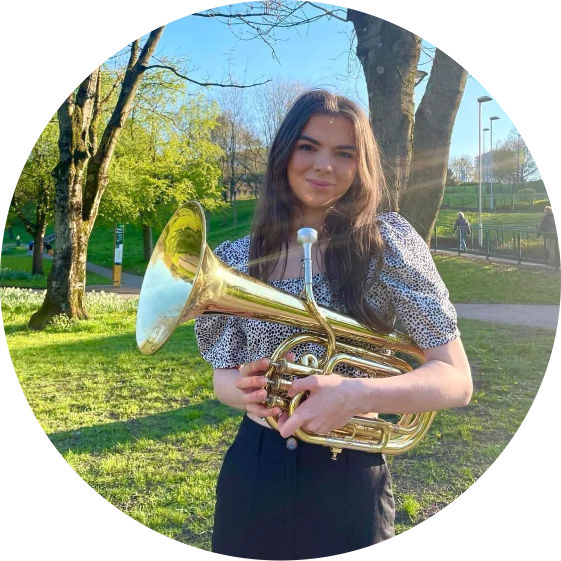 Emma started playing the baritone, aged 8, in her primary school brass band and Wardle Junior Blast under the tuition of Lee Rigg which lead her on to join the Wardle Academy Youth band, which she played in up until the age of 18. With the youth band Emma, won numerous national, European and brass in concert titles and travelled up and down the country and across Europe to play in many iconic venues.