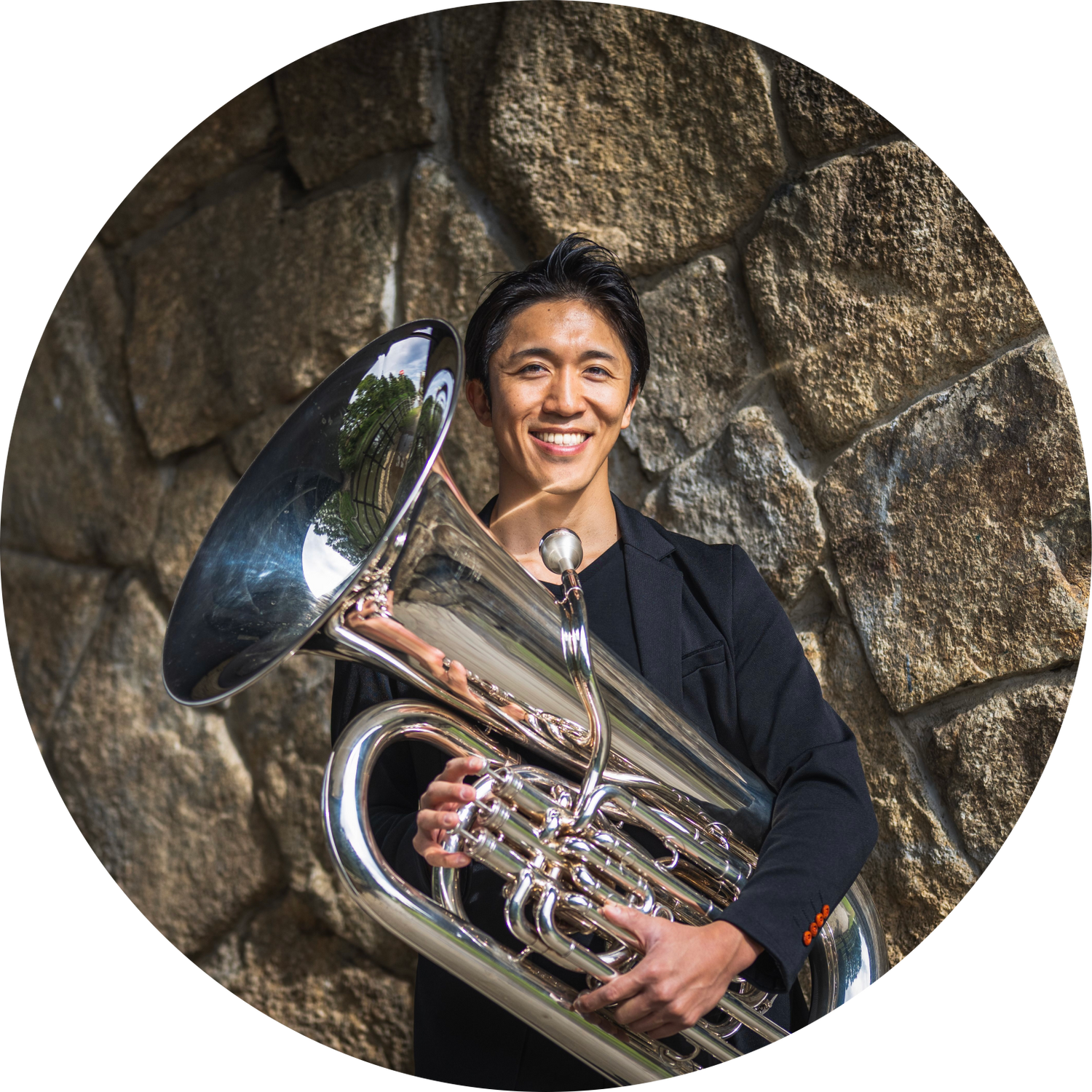 As the Tuba soloist, he enjoyed playing concertos and solo pieces with the Brass and Beat, the Northern Christal Band Sapporo, the mass band of the Brass Band Camp in Hamamatsu, the Brass Band Xepher, the Nexus Brass Band, the Riverside British Brass and one of the most historical bands in Japan, the Tokyo Brass Society.