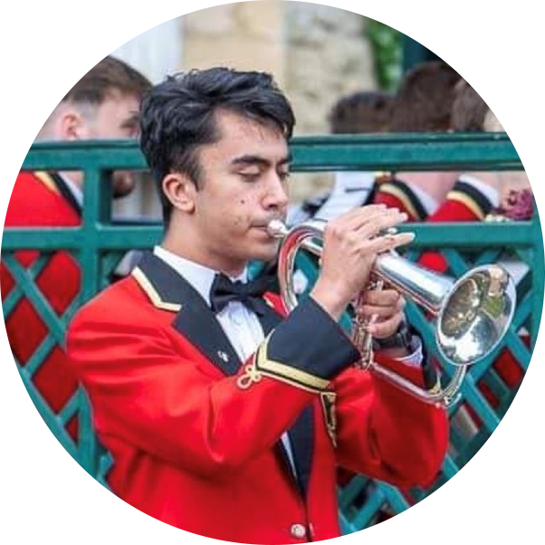 Starting on the trumpet at age 7, Peter Abeyawardene was first introduced to brass banding when he joined the Tewit Youth Senior Band when he was 13 years old. After six months, musical director Martin Hall offered him a seat on the back row of the Tewit Silver Band, who during Peter’s time with the band have won two National Titles (4th and 3rd section) and have claimed eight other contest victories. Now moving into the 1st Section, he is looking forward to competing at the upcoming Area contest as a front row cornet player.
